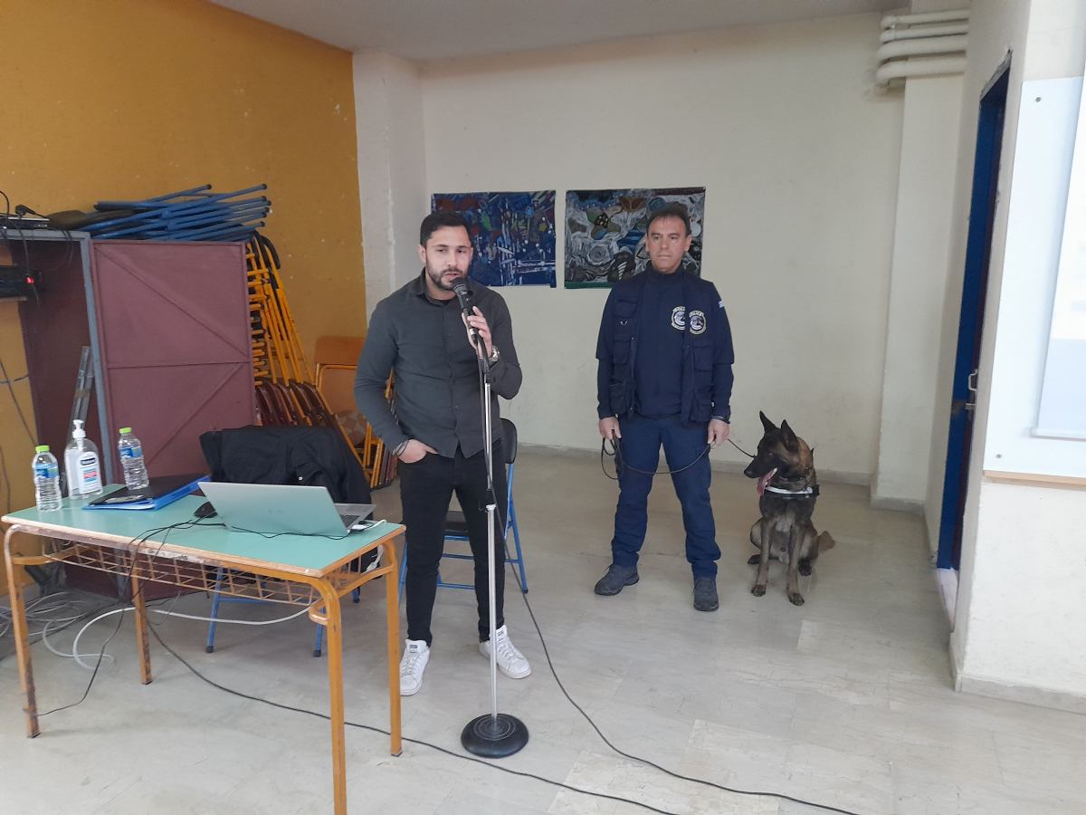 Στο τέλος ακολούθησε επίδειξη ανίχνευσης και εντοπισμού ουσιών από τον υπέροχο σκύλο της αστυνομίας, που έκλεψε κυριολεκτικά την παράσταση προκαλώντας ενθουσιασμό στους μαθητές.