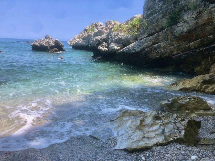 Το πράσινο και η πλούσια βλάστηση έρχονται και ενώνονται αρμονικώς με τα πασπαλισμένα με αλμύρα μικρά βραχάκια της αμμουδιάς, με τα αστραφτερά βότσαλα και με το βαθύ γαλάζιο των διαυγών νερών, συνθέτοντας ένα αρχετυπικό σκηνικό βγαλμένο κατευθείαν από το όνειρο που καλείται «ελληνικό καλοκαίρι.»