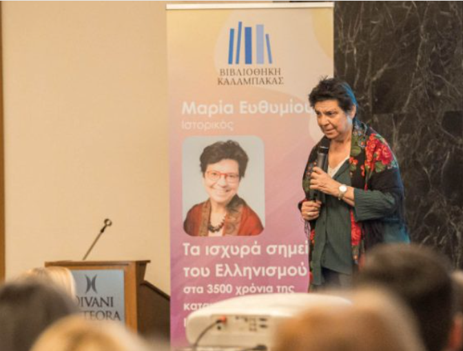 Η Βιβλιοθήκη Καλαμπάκας είχε την χαρά και την τιμή να φιλοξενήσει την Τρίτη 23 Ιανουαρίου τη διαπρεπή ιστορικό και συγγραφέα Μαρία Ευθυμίου. Η κα Ευθυμίου, αρχικά ξεναγήθηκε από τη διευθύντρια κ. Κατσιαμάνη στους χώρους της Βιβλιοθήκης και ενημερώθηκε για τα προγράμματα και τα έργο της. Στη συνέχεια, πραγματοποιήθηκε η ομιλία της με θέμα τα ισχυρά σημεία του ελληνισμού στα 3.500 χρόνια της καταγεγραμμένης ιστορίας του στο ξενοδοχείο Divani Meteora Hotel.