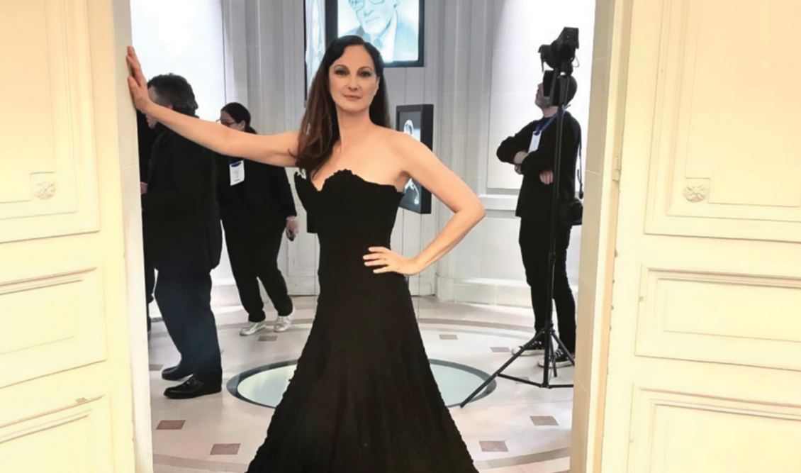 Η Έλενα Κουντουρά φόρεσε µια µαύρη τουαλέτα µε οργάντζα 700 µέτρων και απαράµιλλη χειροποίητη εργασία εκατοντάδων ωρών.