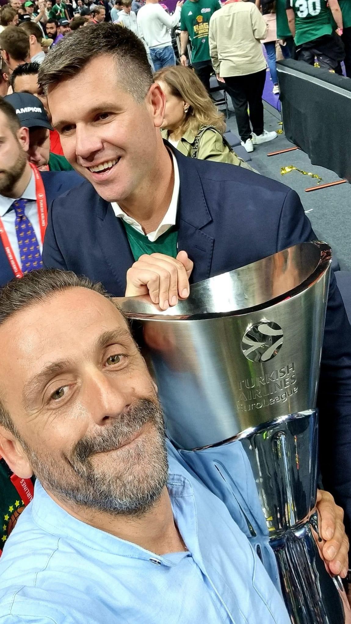 Χαρές και πανηγύρια για τους πρωταγωνιστές στο παρκέ του Uber Arena αλλά και για εκατοντάδες Έλληνες οπαδούς του τριφυλλιού που έσπευσαν στο Βερολίνο για να υποστηρίξουν την αγαπημένη τους ομαδα και με ελπίδα την κατάκτηση του τροπαίου Ανάμεσα τους ο γνωστός Τρικαλινός επαγγελματίας που δραστηριοποιείται στα Τρίκαλα Παναγιώτης Γεωργούλας που εισήλθε στον αγωνιστικό χώρο για να αγκαλιάσει πρωταθλητές και κούπα και γιορτάσει μαζί τους την μεγάλη επιτυχία