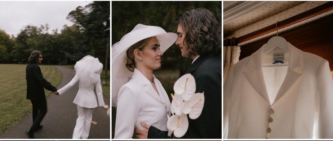 Μαζί με τη σχεδιάστρια Teresa Patiño, που συνήθως εμπνέεται για τα κομμάτια της από τις σιλουέτες των δεκαετιών του ’20 και του ’30 και για τα κεντήματα της από τα σχέδια των αρχών του εικοστού αιώνα, τη φύση ή την Ιαπωνία, βρήκαν την τέλεια νυφική εμφάνιση. Η νύφη έκανε ένα look που σε κάνει να σκέφτεσαι την Μπιάνκα Τζάγκερ.