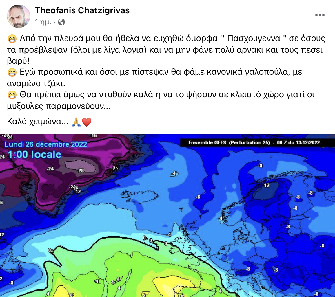 Η «μάχη» για την καιρική πρόβλεψη τα Χριστούγεννα και η ειρωνική ανάρτηση για όμορφα «Πασχούγεννα» από Λαρισαίο αναλυτή καιρού
