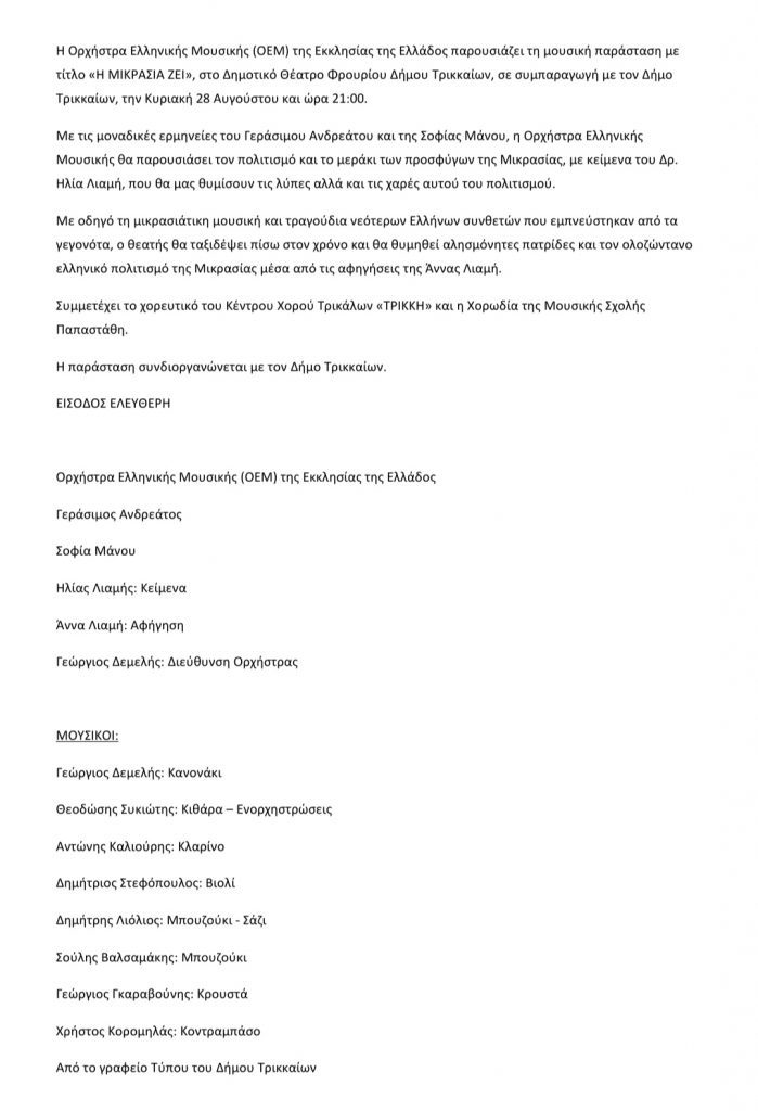 Τρίκαλα Η ορχήστρα Ελληνικής μουσικής της Εκκλησίας της Ελλάδος στα Τρίκαλα Αλεξάνδρα Τάμπου16/08/2022 Less than a minute Facebook X i Διαβάστε επίσης... Η Κομπανία Βέρδη αναμένεται να «ανάψει» το γλέντι στον Παλαιόπυργο την Κυριακή 21/12 01/12/2025 Με 62 συλλόγους η Ελλάδα χορεύει στις “Γιορτές Παράδοσης 2025-26“ του Μύλου των Ξωτικών 01/12/2025 Αλεξάνδρα Τάμπου16/08/2022 Less than a minute Facebook X Share Facebook X Pinterest WhatsApp Viber
