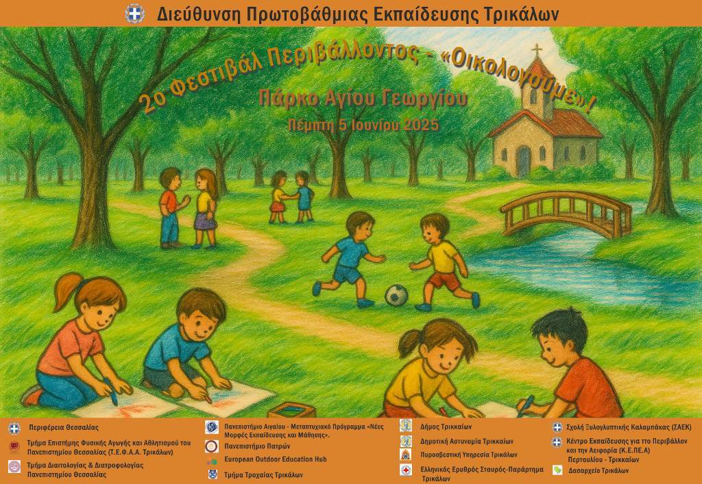Την Πέμπτη 5 Ιουνίου 2025, η Διεύθυνση Πρωτοβάθμιας Εκπαίδευσης Τρικάλων τιμά την Παγκόσμια Ημέρα Περιβάλλοντος διοργανώνοντας το 2ο Φεστιβάλ Περιβάλλοντος – «Οικολογούμε». Η εκδήλωση θα φιλοξενηθεί στο Πάρκο του Άη Γιώργη στα Τρίκαλα, από τις 08:15 π.μ. έως τις 13:00 μ.μ., σε μια μέρα αφιερωμένη στην περιβαλλοντική ευαισθητοποίηση και την αειφόρο ανάπτυξη.