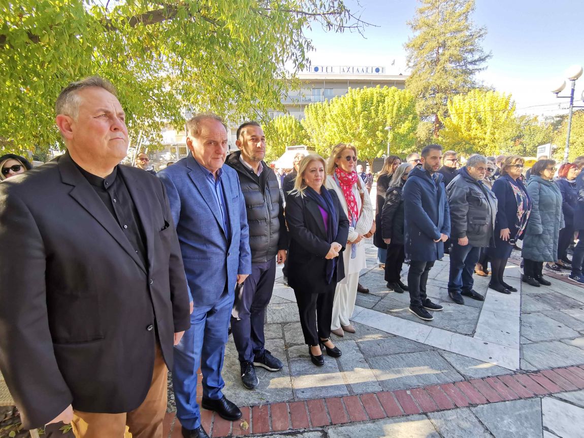 Στεφάνια κατέθεσαν: η βουλεύτρια του ΣΥΡΙΖΑ – ΠΣ Μαρίνα Κοντοτόλη, ο δημαρχεύων,