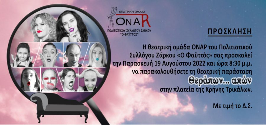 Θεατρική παράσταση αύριο Παρασκευή από την θεατρική ομάδα “ΟΝΑΡ” του Ζάρκου – Η είσοδος είναι ελεύθερη για όλους!