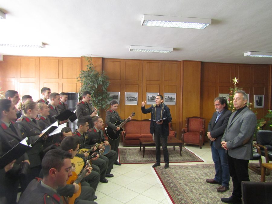 Σε εορταστικό κλίμα οι σπουδαστές και οι σπουδάστριες της Σχολής Μονίμων Υπαξιωματικών, επισκέφθηκαν την Περιφερειακή Ενότητα Τρικάλων παρουσία του Αντιπεριφερειάρχη Τρικάλων κ. Χρήστο Μιχαλάκη και   του Αντιπεριφερειάρχη Χωρικού Σχεδιασμού & Πολιτικής Γής  κ. Κων/νο Μπάρδα, για τα καθιερωμένα Χριστουγεννιάτικα κάλαντα.