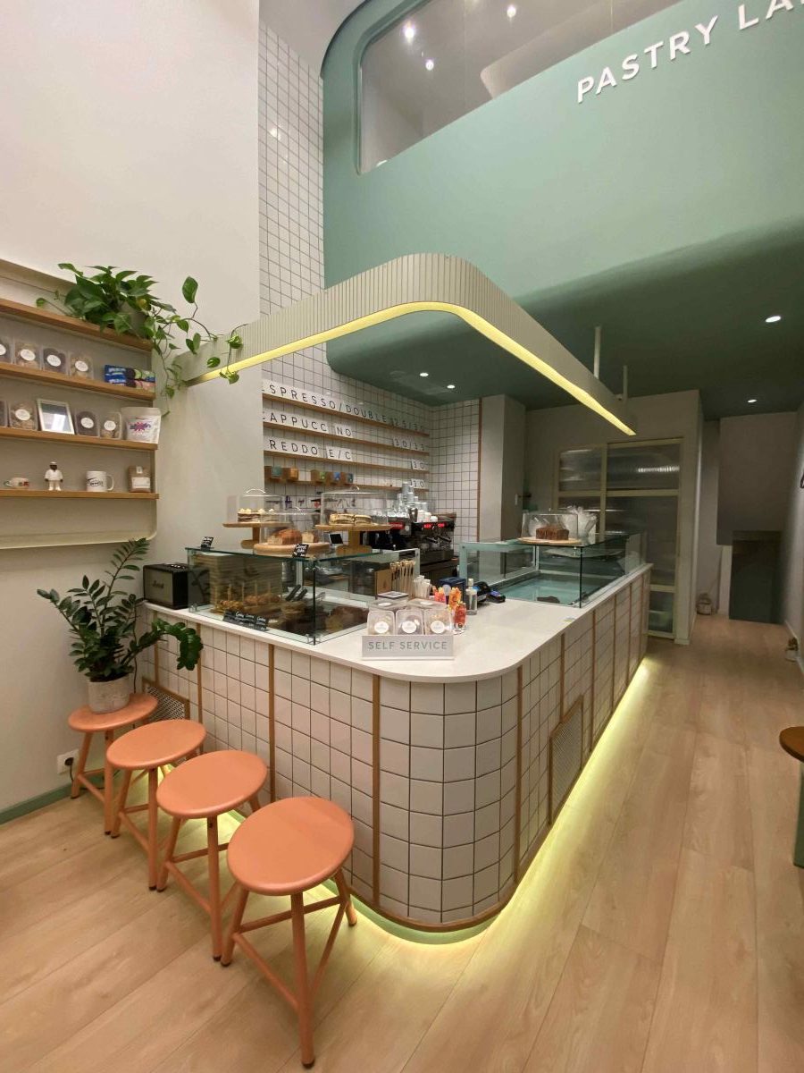 Η ατμόσφαιρα στο “Κέικ” είναι ένας συνδυασμός κομψότητας και άνεσης, που καλεί τους πελάτες