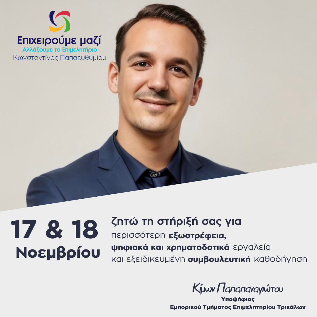 Υποψήφιος Εμπορικού Τμήματος Επιμελητηρίου Τρικάλων
