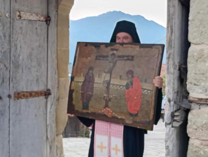 Καλαμπάκα: Στον Ι.Ν Κοιμήσεως της Θεοτόκου η Ιερά Εικόνα της Σταυρώσεως του Χριστού από την Ι. Μ. Βαρλαάμ