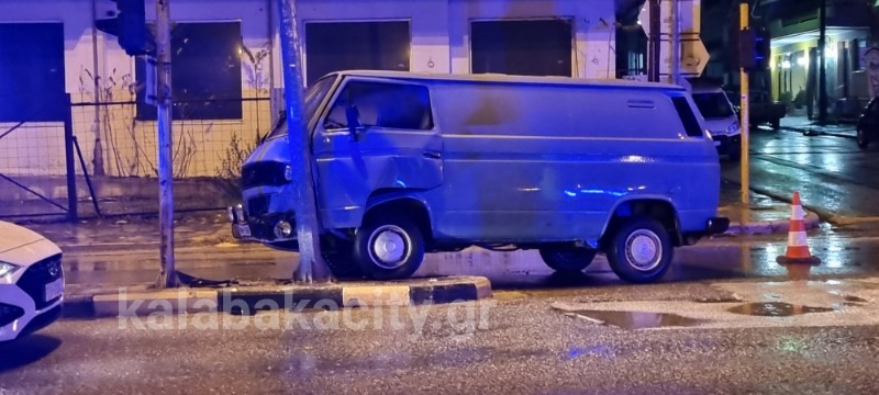Καλαμπάκα: Όχημα “καρφώθηκε” σε κολόνα φωτισμού στην οδό Πίνδου