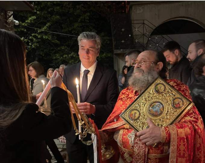 Η εκκλησία του Αγίου Γεωργίου ήταν κατάμεστη, φωτισμένη μοναδικά από εκατοντάδες κεριά και τα λαμπερά κόκκινα φώτα που στόλιζαν τα καμπαναριά. Τα λάβαρα της Ανάστασης στόλισαν τον Ιερό Ναό, δημιουργώντας μια ατμόσφαιρα βαθιάς συγκίνησης και ευλάβειας. Το «Χριστός Ανέστη» αντήχησε δυνατά μέσα στο βουνίσιο τοπίο, γεμίζοντας καρδιές με ελπίδα και φως.