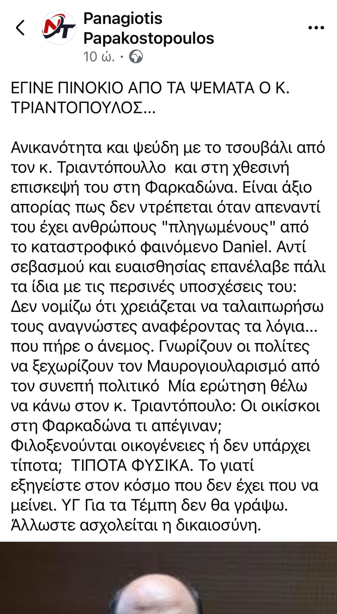 Καταπέλτης κατά υπουργού ,αρθογράφος για τους πλημμυροπαθείς της Φαρκαδόνας