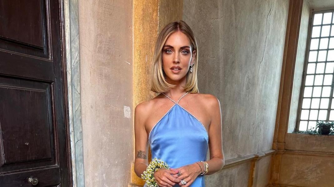 Η Κιάρα επέλεξε ένα φόρεμα από γαλάζιο σατέν ύφασμα που θύμιζε τα εσώρουχα ή τα slip dresses της δεκαετίας του ’90, τα οποία επανήλθαν πρόσφατα στη μόδα και έγιναν ανάρπαστα στις τελευταίες πασαρέλες του Μιλάνου και του Παρισιού και στα κόκκινα χαλιά του Φεστιβάλ Κινηματογράφου της Βενετίας.