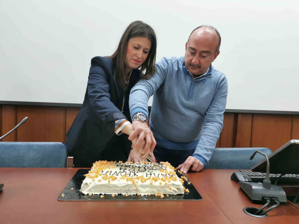 Επιτροπής, λίγο πριν τη συνεδρίασή της, έκοψαν την πρωτοχρονιάτικη πίτα. Ο κ. Σακκάς