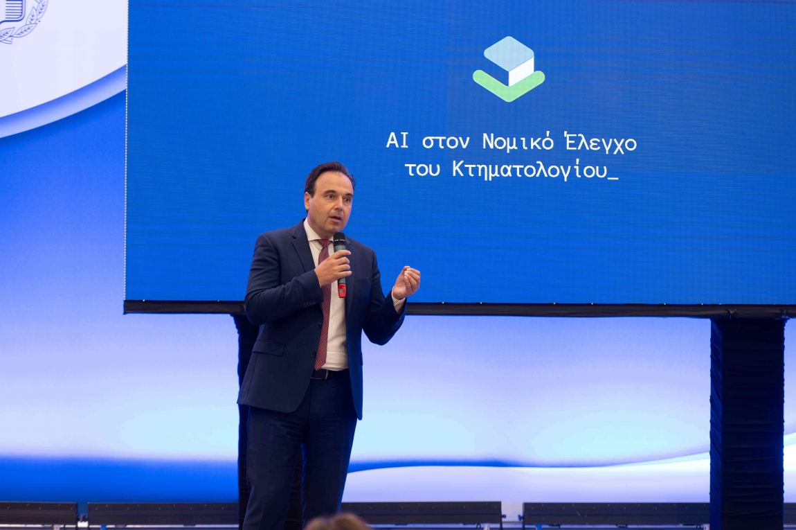 Την εφαρμογή Τεχνητής Νοημοσύνης στον Νομικό Έλεγχο του Κτηματολογίου παρουσίασαν σήμερα ο Υπουργός Ψηφιακής Διακυβέρνησης Δημήτρης Παπαστεργίου και ο Υφυπουργός Ψηφιακής Διακυβέρνησης Κωνσταντίνος Κυρανάκης. Με το εργαλείο αυτό, το Κτηματολόγιο γίνεται ο πρώτος Δημόσιος φορέας που αξιοποιεί Τεχνητή Νοημοσύνη για τη λήψη διοικητικών αποφάσεων και αναμένεται να επιταχύνει σημαντικά τη διαδικασία νομικού ελέγχου των συμβολαίων από τους προϊσταμένους των αρμόδιων υπηρεσιών.