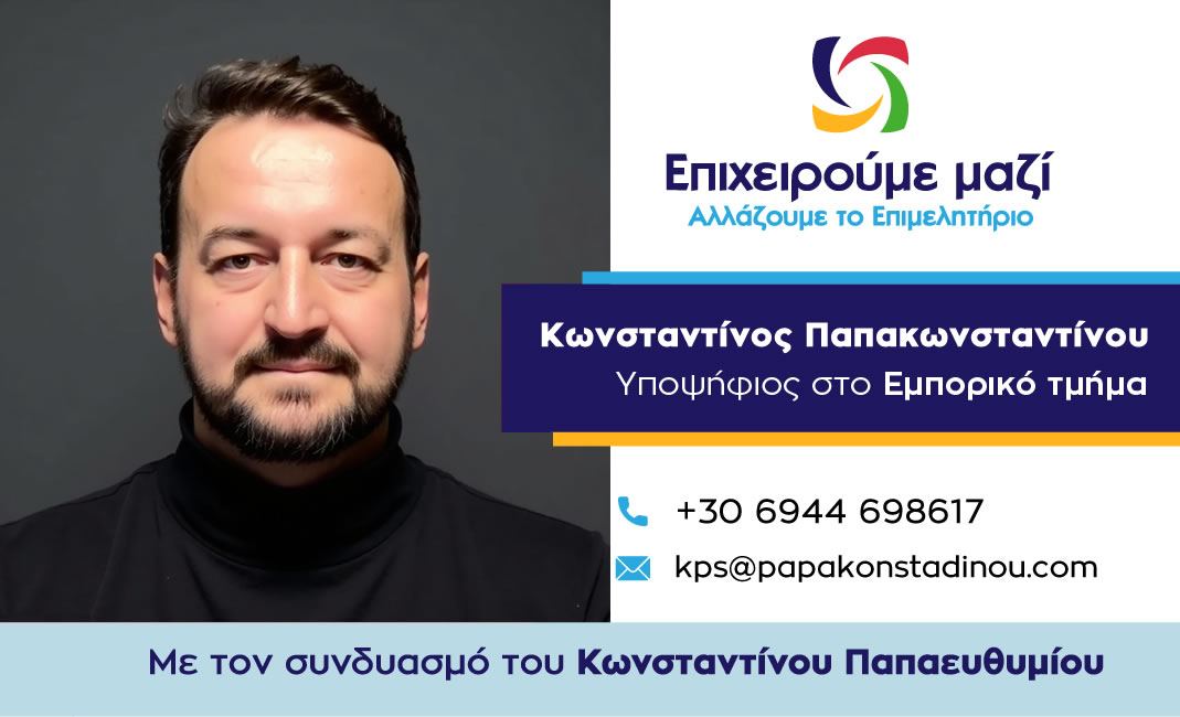 Υποψήφιος στο Εμπορικό Τμήμα – Συνδυασμός ”Επιχειρούμε Μαζί” με τον Κ. Παπαευθυμίου