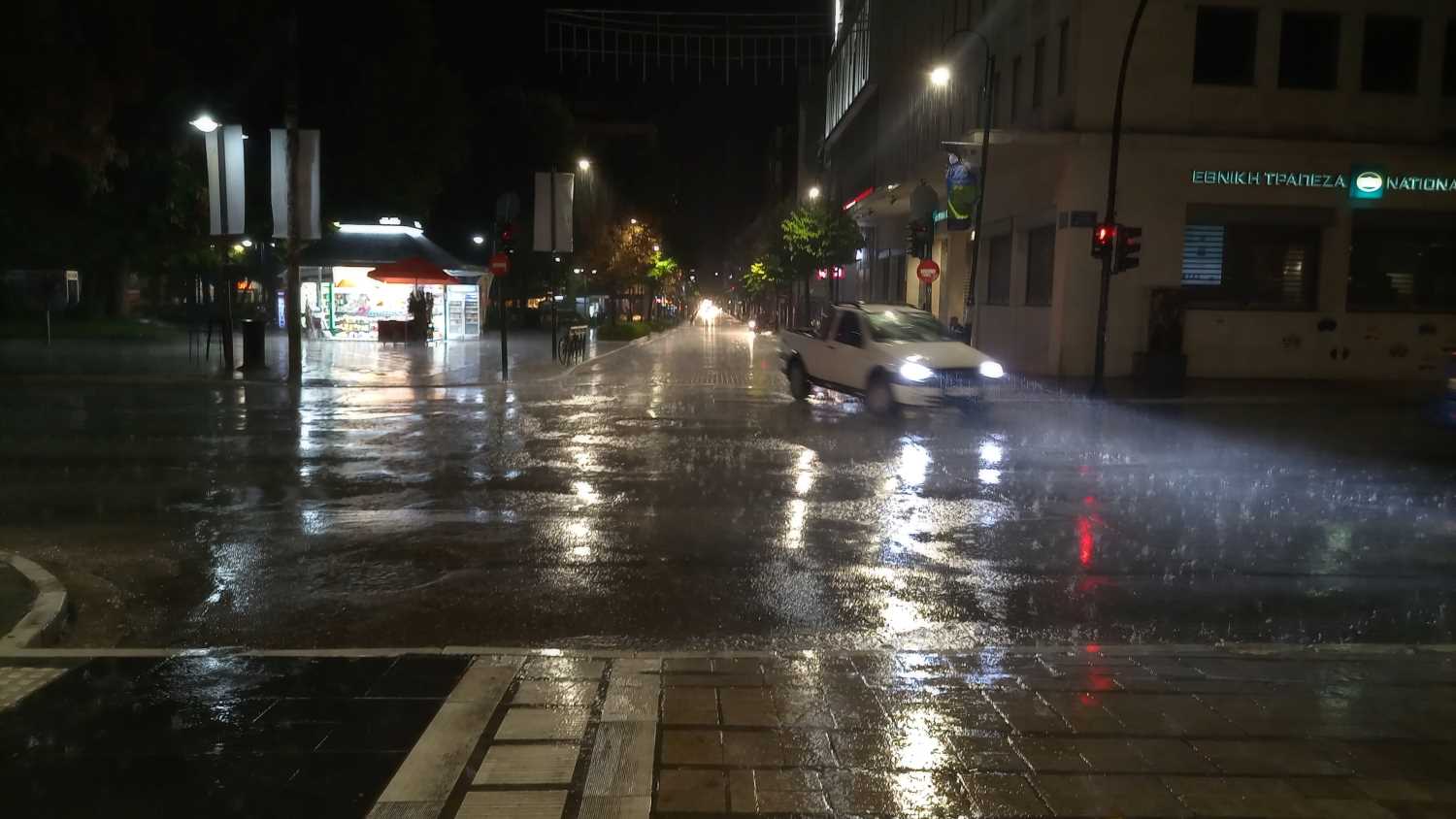 Καλοκαιρινή μπόρα ξέσπασε λίγο μετά τις 11 το βράδυ της Τετάρτης στην πόλη της Λάρισας. Μέσα σε λίγα λεπτά, οι δρόμοι μετατράπηκαν σε ρυάκια, με αποτέλεσμα να είναι δύσκολο για τους πεζούς να διασχίσουν τα κεντρικά σημεία.