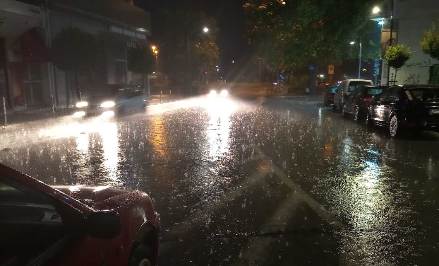 Λάρισα: Καλοκαιρινή μπόρα στην πόλη – Πλημμύρισαν δρόμοι, ρυάκια στις άκρες των πεζοδρομίων