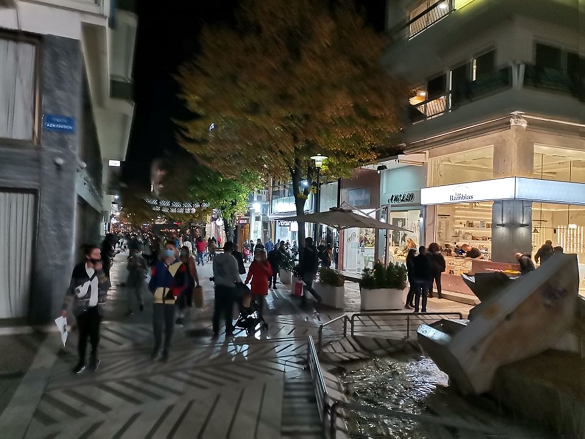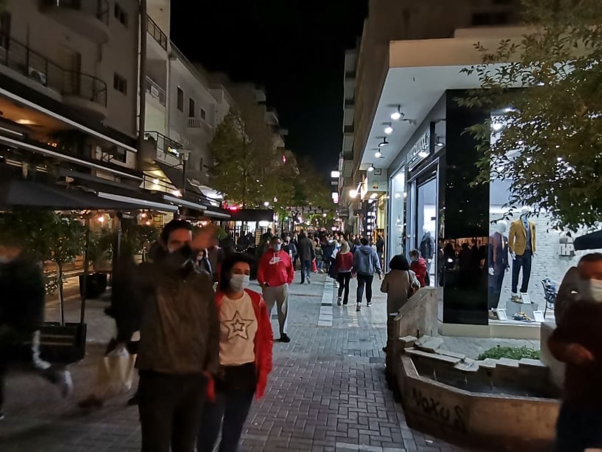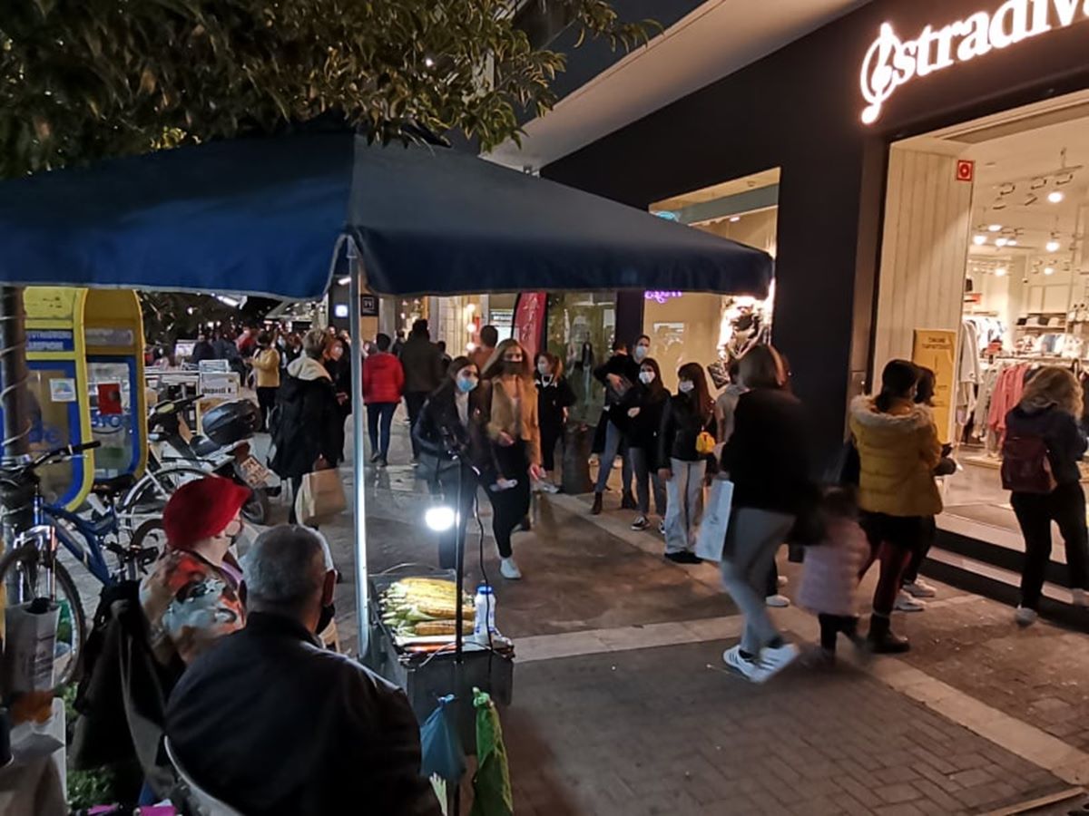 Το αδιαχώρητο το απόγευμα της Παρασκευής στη Λάρισα, λίγες ώρες πριν το lockdown. Οι Λαρισαίοι ξεχύθηκαν στην αγορά και γέμισαν τα εμπορικά καταστήματα και τους πεζοδρόμους, θυμίζοντας τελευταία ημέρα ανοιχτών εμπορικών καταστημάτων πριν τα Χριστούγεννα.