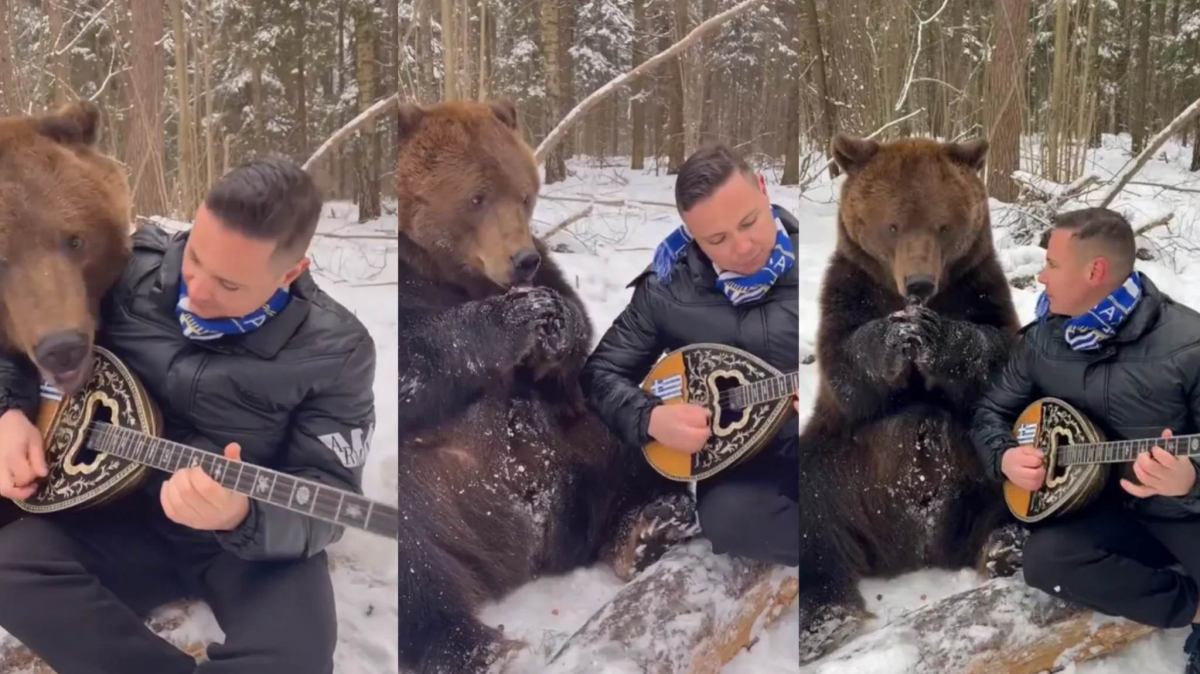 Λαρισαίος γίνεται viral παίζοντας μπουζούκι στα χιόνια με μια αρκούδα