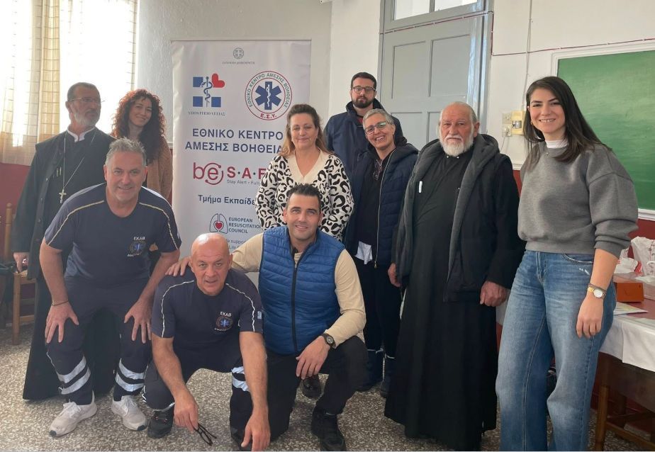 Το σεμινάριο Πρώτων Βοηθειών, που οργανώθηκε στην καρδιά του χωριού, συγκέντρωσε μεγάλο ενδιαφέρον από νέους και μεγαλύτερους κατοίκους. Οι συμμετέχοντες είχαν την ευκαιρία να εξοικειωθούν με τη χρήση απινιδωτή, να εξασκηθούν σε τεχνικές ΚΑΡΠΑ, αλλά και να μάθουν βασικά βήματα αντιμετώπισης επειγόντων περιστατικών μέχρι την άφιξη εξειδικευμένης βοήθειας.Μπορεί να είναι εικόνα ένα ή περισσότερα άτομα και κείμενο