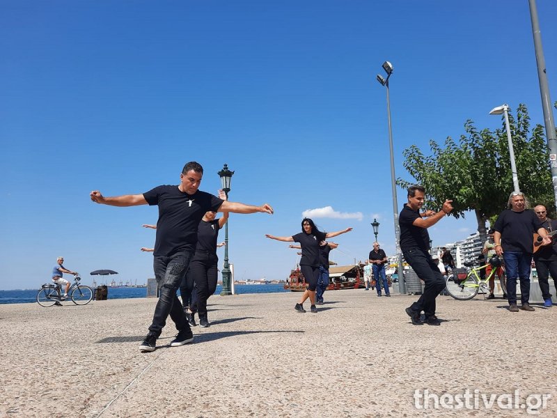 Στο πλακόστρωτο της Νέας Παραλίας, δίπλα στο Λευκό Πύργο, τα μέλη της ακαδημίας χόρεψαν τρια εμβληματικά ζεϊμπέκικα του μεγάλου μουσικοσυνθέτη, τη Δραπετσώνα, την Ξενιτιά και τη Φτωχογειτονιά, συνοδεία ορχήστρας με τραγουδιστή τον Παναγιώτη Καραδημήτρη, ο οποίος είχε συνεργαστεί με τον Μίκη Θεοδωράκη.