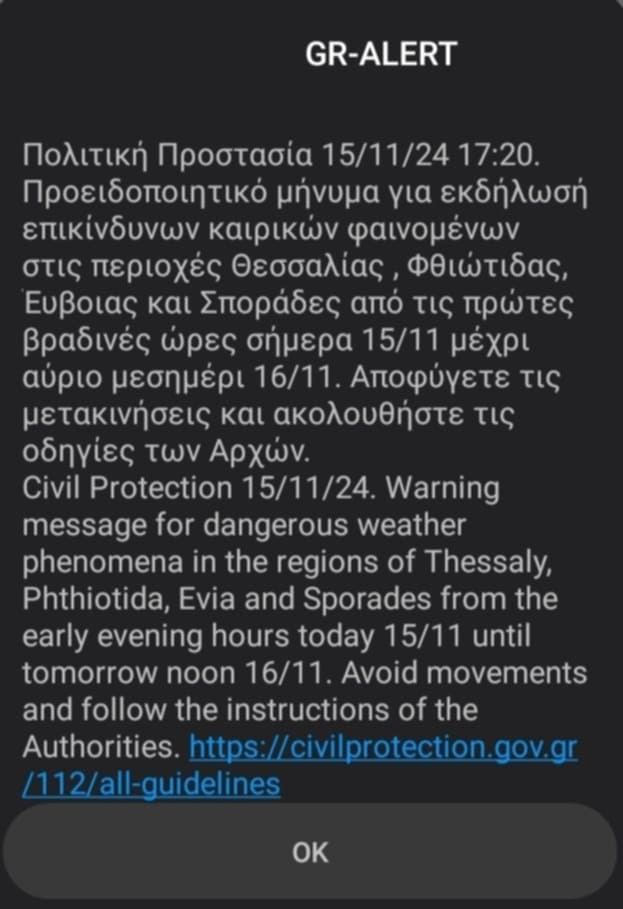 Μήνυμα 112 στάλθηκε σε κατοίκους των Τρικάλων