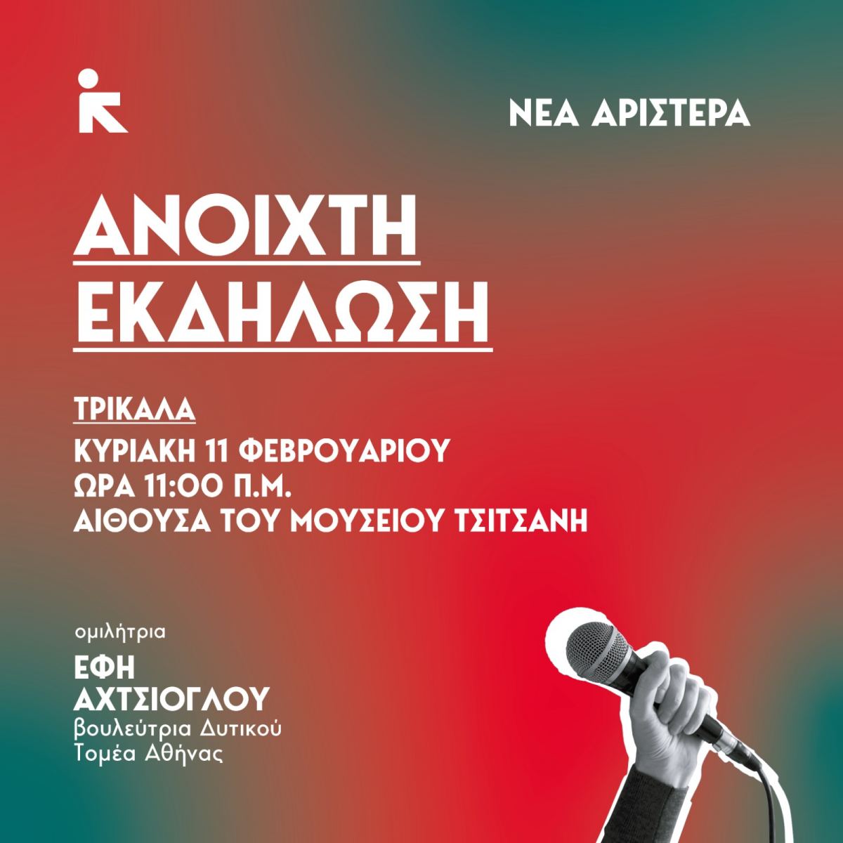 ανοιχτή εκδήλωση της Νέας Αριστεράς.