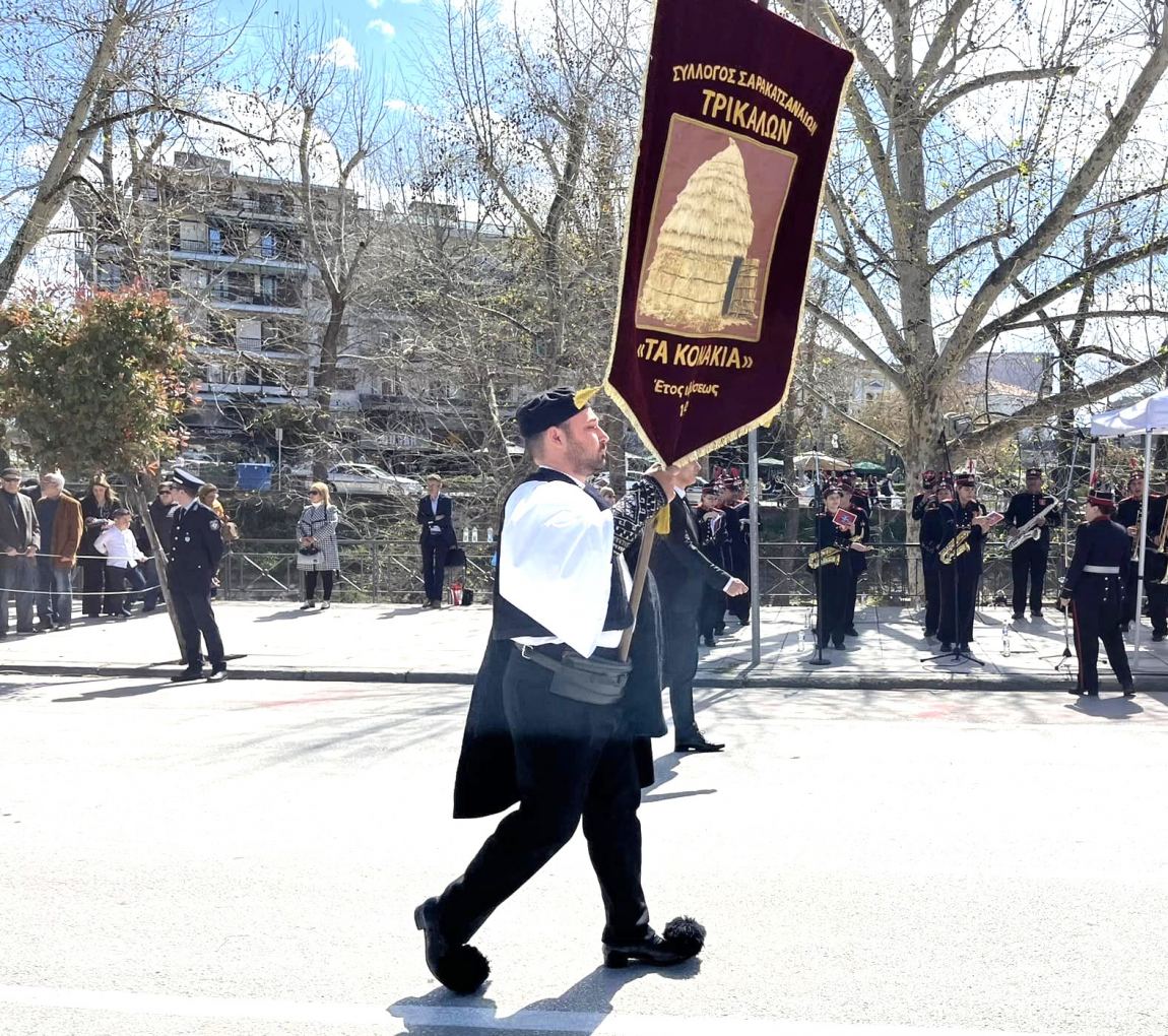 Με ξεχωριστή λαμπρότητα γιορτάστηκε και φέτος η παρέλαση της 25ης Μαρτίου στα Τρίκαλα με τα βλέμματα να εστιάζονται στην παρουσία των πολιτιστικών συλλόγων ..Ανάμεσα σε αυτούς και ο σύλλογος των Τρικαλινών Σαρακατσαναίων με το ενδιαφέρον να εστιάζεται τόσο στο λάβαρο όσο και στον σημαιοφόρο που δεν ήταν άλλος από τον γνωστό αστυνομικό της ZHTA  Χρήστο Σκυλοδήμο . Ο “νεαρός” της δίκυκλης αστυνόμευσης στα Τρίκαλα απολαμβάνει έναν θετικό βαθμό αναγνωρισιμότητας στον κυκλοφοριακό ιστό της πόλης και ήταν αναμενόμενο να δεχτεί το αυθόρμητο χειροκρότημα αλλά και τις επευφημίες των φίλων του. Με Περηφάνια και τιμή για όλους τους ανθρώπους  που παρέλασαν, με τις υπέροχες φορεσιές και το λάβαρο ο αστυνομικός  αποτέλεσε το καμάρι του συλλόγου …..