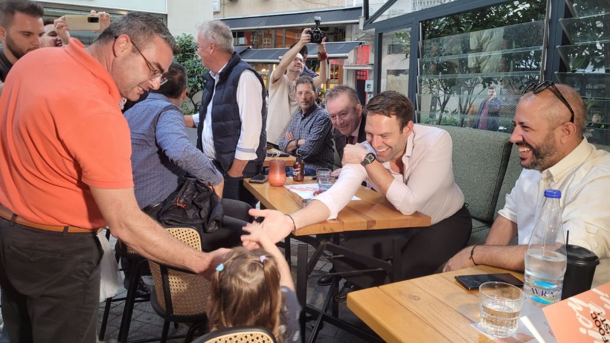 Με στελέχη και φίλους του ΣΥΡΙΖΑ συνομίλησε ο Κασσελάκης σε κεντρική καφετέρια της Λάρισας (φωτό)
