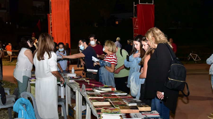Στο χώρο που είχαν διαμορφώσει από την Πέμπτη τα μέλη και οι φίλοι της ΚΝΕ, υπήρχε έκθεση βιβλίου της «Σύγχρονης Εποχής», θεματικά περίπτερα, εκθέσεις, χώρος για τους μικρούς φίλους της ΚΝΕ, συλλογή υλικής βοήθειας για τους πυρόπληκτους. Ταυτόχρονα πραγματοποιήθηκε θέατρο σκιών με τον Κοσμά Παναγιώκα που διασκέδασε τους μικρούς φίλους της ΚΝΕ.