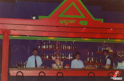 Οι μπάρμαν του club “Κρεγιόν” λίγο πρίν το άνοιγμα του μαγαζιού φθινόπωρο του 1991. Από αριστερά Σ. Μπρέλλας, Γιάννης Καραμπούλας και Δημήτρης Χριστάκος.