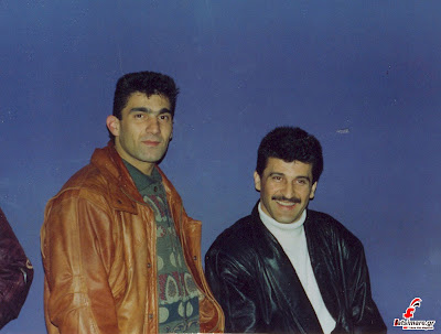 Ο αείμνηστος Κώστας Μακρής αριστερά με τον Χρήστο Πέτρου χειμώνα του 1989.