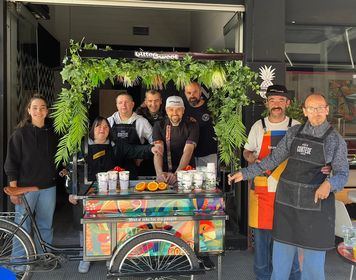 Ο Σάκης Παπαγιάννης bartender και συνιδιοκτήτης του Bittersweet Cocktail bar σε συνεργασία με τον Τάσο Κρικέλη Εκπαιδευτή Σκύλων βοηθών ΑΜΕΑ και την Ελένη Τσιάντα Γυμνάστρια Ειδικής αγωγής