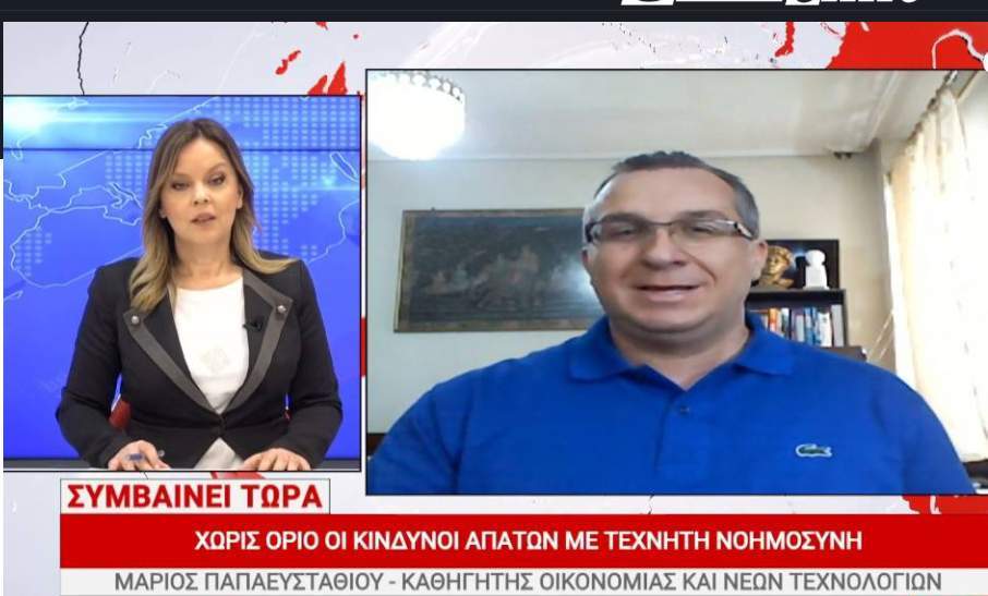 Στην εκπομπή «Συμβαίνει Τώρα» της ASTRA Τηλεόρασης με τη δημοσιογράφο Βάσω Σαμακοβλή, ο Γνωστός καθηγητής Οικονομίας και Νέων Τεχνολογιών Μάριος Παπαευσταθίου αποκάλυψε τους μηχανισμούς μιας από τις πιο σοκαριστικές τεχνολογικές απάτες της εποχής μας: της κλωνοποίησης φωνής μέσω Τεχνητής Νοημοσύνης.