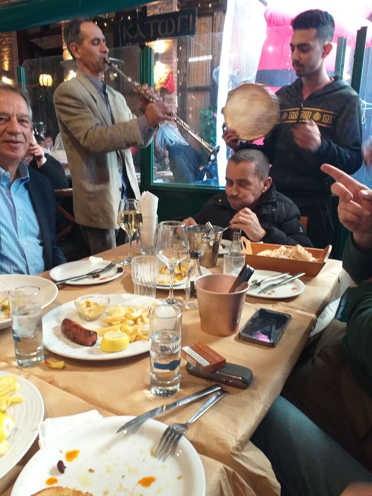 Ο γνωστός Βαλκάνιος και απόλυτα δημοφιλής στους αθλητικούς κύκλους Φάτος κατάφερε και πάλι να στρέψει το ενδιαφέρον πάνω του. Μετά τα γήπεδα και τις ποδοσφαιρικές αλάνες όπου κατά καιρούς έχει αφήσει το στίγμα του πλέον αποτελεί και μέρος της κοινωνικής ζωής του τόπου με την παρουσία του στα σημεία διασκέδασης της πόλης . Με χορηγό διασκέδασης τον αντιπεριφερειάρχη Τρικάλων, εθεάθη σε ταβέρνα στα μανάβικα το μεσημέρι της περασμένης Κυριακής να γευματίζει μαζί με πολυπληθή παρέα .Με χαμηλούς τόνους στην αρχή ,έδειξε ασυγκράτητος και παρορμητικός στην συνέχεια, όταν λαϊκή ορχήστρα περιπλανόδιων μουσικών ,του έβαλε το κλαρίνο στο αυτί .Το αποτέλεσμα……όσο μπόι του έλειπε, άλλο τόσο ανάστημα επέδειξε ,καταφέρνοντας να τραβήξει όλα τα βλέμματα πάνω του, αναγκάζοντας, τους θαμώνες του μαγαζιού, να σιγοντάρουν την μερακλωμένη μυσταγωγία του με παρατεταμένα παλαμάκια….τόσο που κατάφεραν να τον μπουκώσουν στο φαί (φωτο)