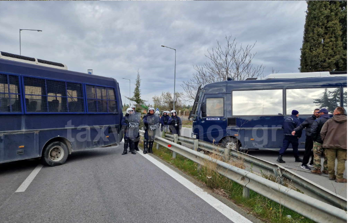 Αστυνομικές δυνάμεις από Μαγνησία, Τρίκαλα και άλλες περιοχές έχουν παραταχθεί στον Αλμυρό, μπροστά από την εκκλησία του Αγίου Τρύφωνα για να αποτρέψουν την άνοδο των παραγωγών στην Εθνική Οδό, στο ύψος του κόμβου Αλμυρού.