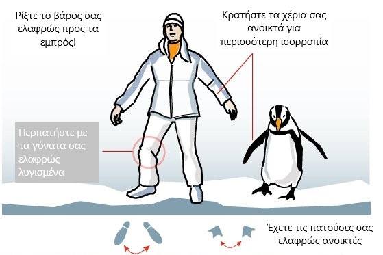 άσκοπα όταν περπατάτε σε παγωμένη επιφάνεια. Μπορεί να γλιστρήσετε ανά πάσα στιγμή.