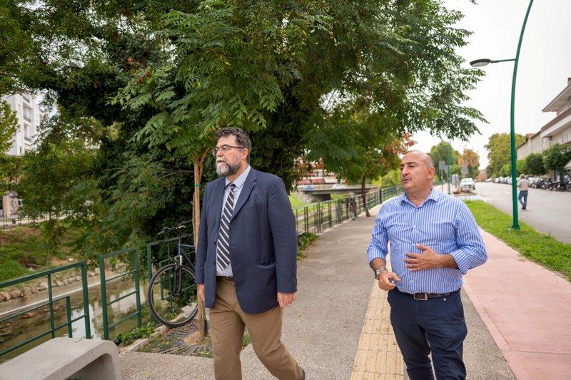 Ο κ. Οικονόμου ξεναγήθηκε από τον Δήμαρχο Τρικκαίων και πρόεδρο της ΠΕΔ Θεσσαλίας Νίκο Σακκά στην πόλη και στα έργα ανάπλασης, στον Ληθαίο ποταμό, στους ποδηλατοδρόμους αλλά και – λίγο νωρίτερα – στον Μύλο Ματσόπουλου.