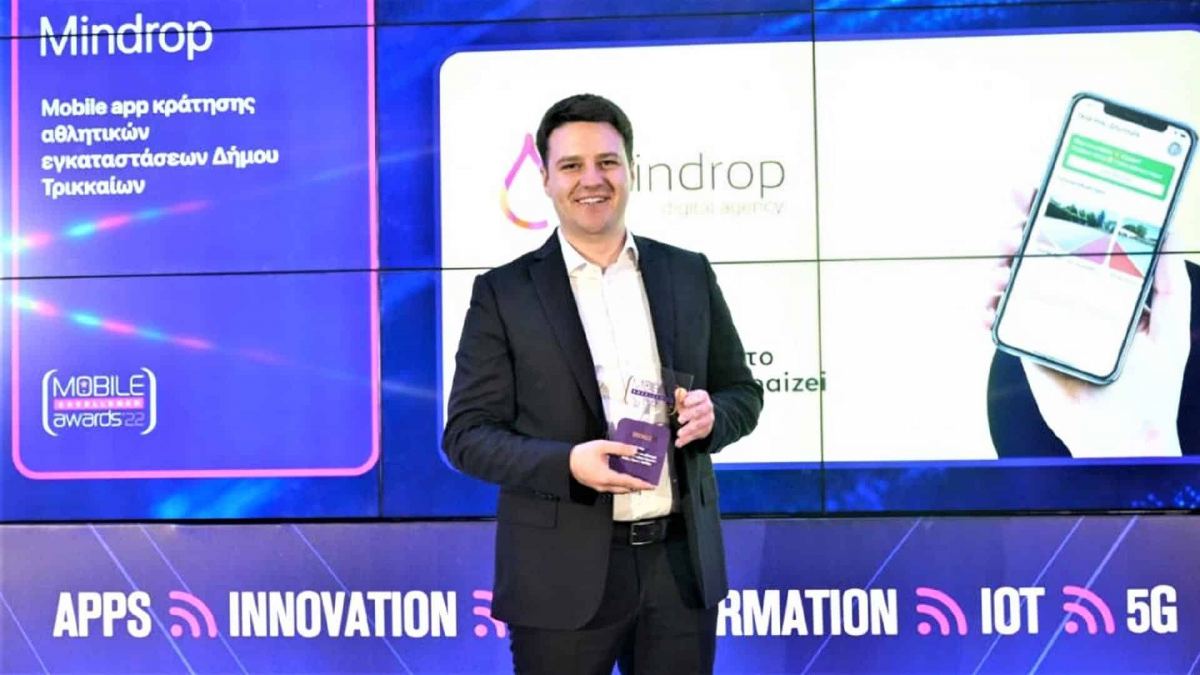 Η Mindrop διακρίθηκε με bronze βραβείο στην κατηγορία «Mobile Εφαρμογές στις Υπηρεσίες & τη Διακυβέρνηση – Health / Fitness / Nutrition» για την εφαρμογή κράτησης αθλητικών εγκαταστάσεων του Δήμου Τρικκαίων.