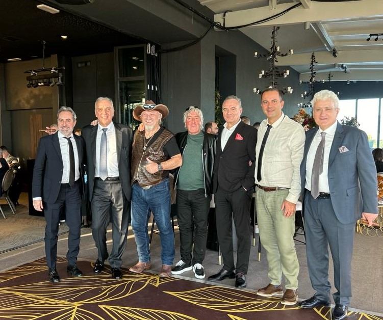 Κάθε ευτυχία στους νιόπαντρους.Ο Ιδρυτής και πρόεδρος της “Electric 80” (μισό δις τζίρος, χίλιοι πτυχιούχοι εργαζόμενοι) εικονίζεται στο μέσον με το καπέλο. Στον Ιταλικό Τύπο τον περιγράφουν ως τον καουμπόη της Μηχατρονικής* (πρόκειται για νεολογισμό που υποδηλώνει τον συνδυασμό των επιστημών της Μηχανολογίας, Ηλεκτρονικής – Ηλεκτρολογίας και Πληροφορικής).