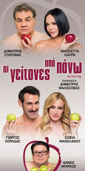 Προπώληση Viva.gr: https://www.viva.gr/tickets/theater/oi-geitones-apo-pano-kalokairini-periodeia/