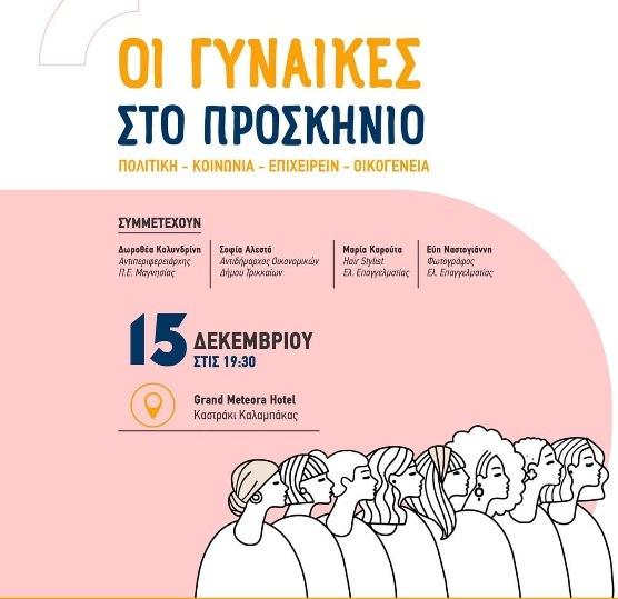 Ο υποψήφιος Δήμαρχος Δήμου Μετεώρων, Λευτέρης Αβραμόπουλος και ο συνδυασμός «Δύναμη Ευθύνης» προσκαλούν όλες και όλους στην εκδήλωση, με θέμα «Οι γυναίκες στο προσκήνιο», στην πολιτική, στην κοινωνία, στο επιχειρείν, στην οικογένεια.