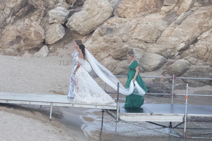 Το μυστήριο τελέστηκε την περασμένη Τρίτη στο εκκλησάκι της παραλίας του Αγραρίου ενώπιον στενών συγγενών και φίλων, ενώ οι καλεσμένοι δεν ξεπέρασαν τους 120. Με την νύφη να φθάνει στην εκκλησία με καΐκι, λάμποντας μέσα στο πανέμορφο νυφικό της, δημιουργία Vrettos Vrettakos και την μητέρα της να την συνοδεύει και να την παραδίδει συγκινημένη στο γαμπρό, ο γάμος του ζευγαριού είχε πολύ ρομαντισμό και συγκίνηση! [Δες εδώ το video του γάμου]