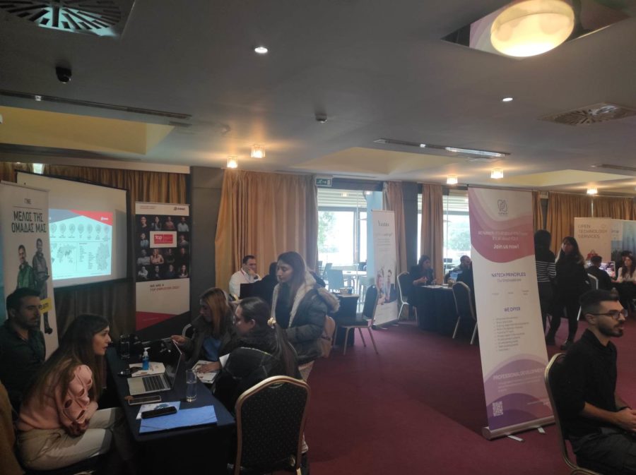 Διευθυντές, recruiters και εξειδικευμένα στελέχη των μεγαλύτερων ομίλων της χώρας αλλά και εταιριών συζήτησαν με τους συμμετέχοντες απόφοιτους και φοιτητές, σε ένα ιδιαίτερα θερμό και ευχάριστο κλίμα, για ευκαιρίες καριέρας και πρακτικής άσκησης.