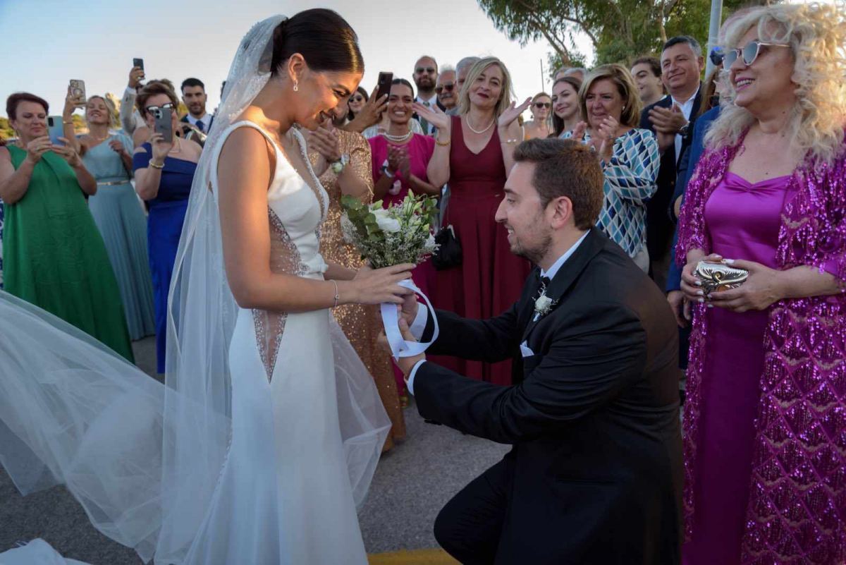 Ο γάμος τους πραγματοποιήθηκε τον Ιούλιο και συνδύαζε ένα εξαιρετικό φυσικό τοπίο δίπλα στη θάλασσα…στην περιοχή Αγία Δύναμη, Χίου.  Έτσι, η τελετή έγινε σε ένα γραφικό ξωκλήσι πλάι στη θάλασσα ενώ ακολούθησε δεξίωση πάνω στο κύμα και παραδοσιακό γλέντι με την ορχήστρα Musicori του Ικαριώτη Νίκου Φάκαρου.. Το  τοπίο εμπλουτίστηκε με ξύλινες λεπτομέρειες, γιρλάντες λευκών λουλουδιών και με το ατμοσφαιρικό φως των κεριών.