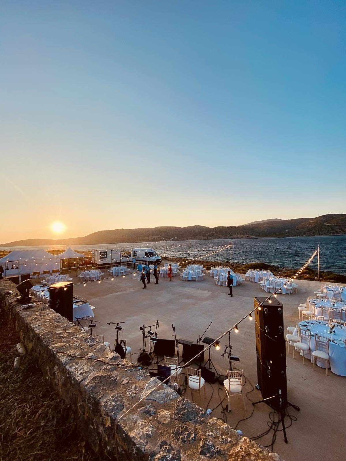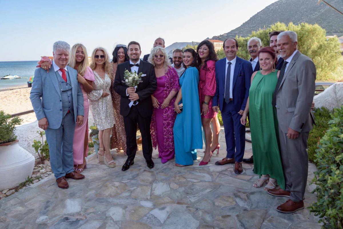 Ο γάμος τους πραγματοποιήθηκε τον Ιούλιο και συνδύαζε ένα εξαιρετικό φυσικό τοπίο δίπλα στη θάλασσα…στην περιοχή Αγία Δύναμη, Χίου.  Έτσι, η τελετή έγινε σε ένα γραφικό ξωκλήσι πλάι στη θάλασσα ενώ ακολούθησε δεξίωση πάνω στο κύμα και παραδοσιακό γλέντι με την ορχήστρα Musicori του Ικαριώτη Νίκου Φάκαρου.. Το  τοπίο εμπλουτίστηκε με ξύλινες λεπτομέρειες, γιρλάντες λευκών λουλουδιών και με το ατμοσφαιρικό φως των κεριών.