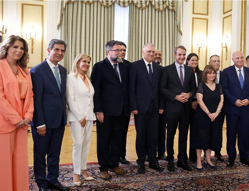 Επισκέψεις το επόμενο διάστημα στα υπουργεία- ξεκινώντας από το παλιό του γραφείο, το υπουργείο Εσωτερικών- ανήγγειλε, εξερχόμενος του Προεδρικού Μεγάρου, ο πρωθυπουργός Κυριάκος Μητσοτάκης μετά το τέλος της ορκωμοσίας με τη σύνθεση της νέας κυβέρνησης. «Και αύριο εδώ θα είμαστε», είπε.Η νέα υφυπουργός Κοινωνικής Συνοχής και Οικογένειας Κατερίνα Παπακώστα